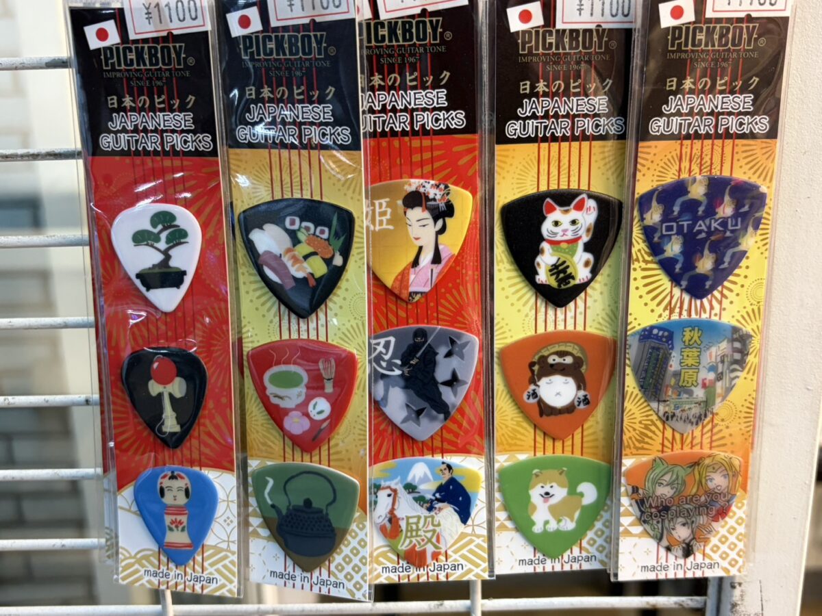 各メーカーから様々なギターピックが商品化されていますが、いろんなキャラクター物等の絵柄や字柄が存在しますよネ。