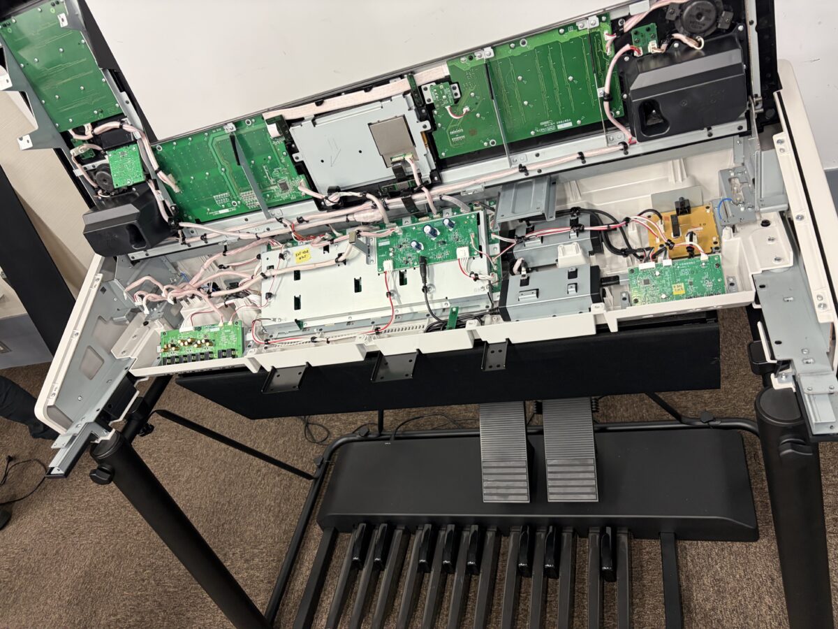 鍵盤の裏にも基板らしきものが付いており、より緻密な仕組みになってるので鍵盤交換となるとハイブリッドピアノのような打鍵の読取位置の矯正もいずれ必要になってこようかと思います。