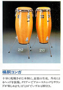 過去のカタログデータを検索してみると、1970年代から1987年のカタログに掲載されていたコンガで、太い胴が「212」で細い方が「210」という数字のみの品番であった事が判明。