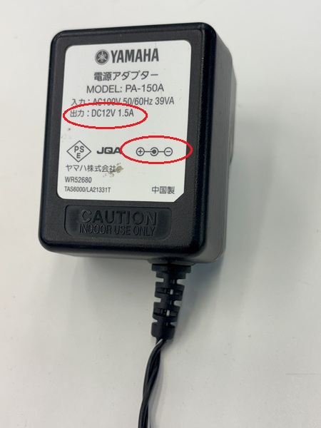 まず、電源が入らない原因でありがちなのは電源アダプターの接触不良なので、まず電源アダプター本体に貼られたラベルシールを見て出力の電圧の値(DC12V)とプラグの極性を確認します。